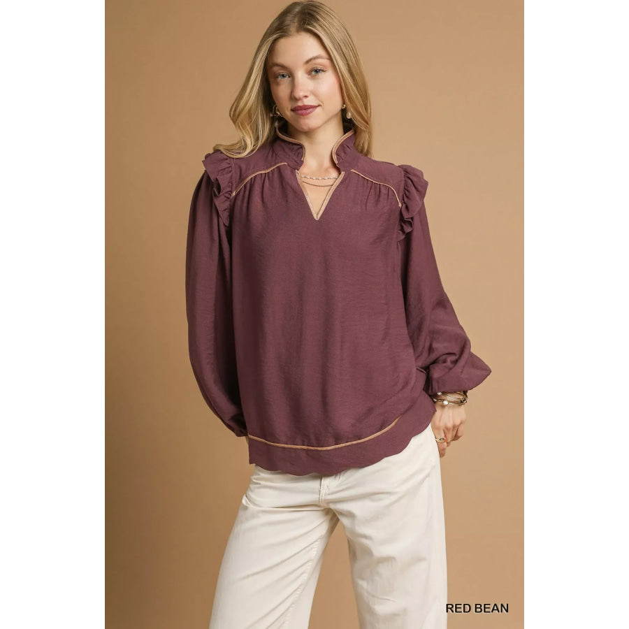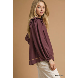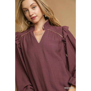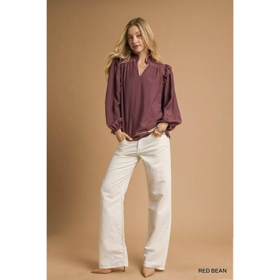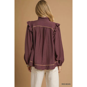 Umgee Ruffle Shoulder Long Sleeve Blouse