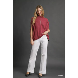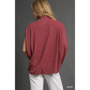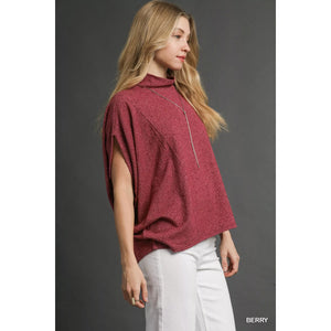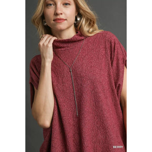 This textured mock neck relaxed top offers a cozy and stylish look with its fleece texture and mock neck design. The short dolman sleeves with side slits add a modern touch to the relaxed silhouette. The straight, easy-fit hemline provides a comfortable and effortless fit for everyday wear. Ideal for layering or wearing on its own, this top is versatile and easy to style. Please note that it is not lined, making it great for layering during cooler months.