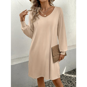 V-Neck Raglan Sleeve Knee Length Dress