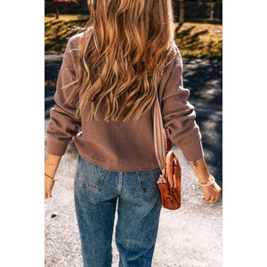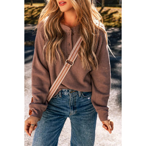 Waffle-Knit Round Neck Long Sleeve Blouse
