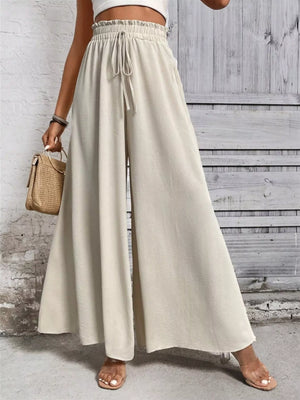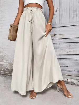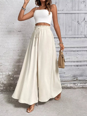 Wide Leg Drawstring Waist Casual Pants