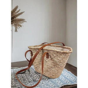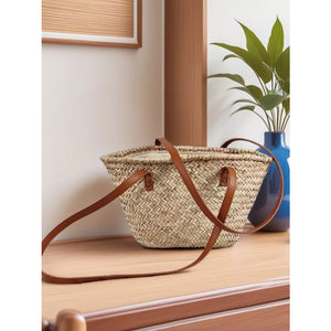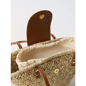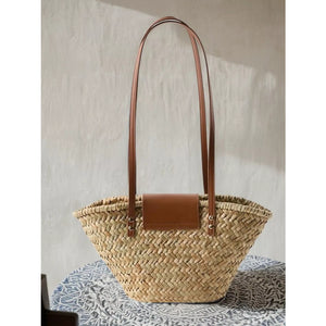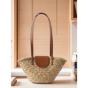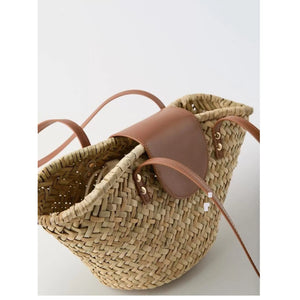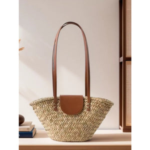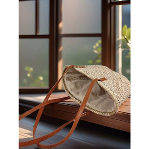 Woven Straw Shoulder Bag with Leather Accents