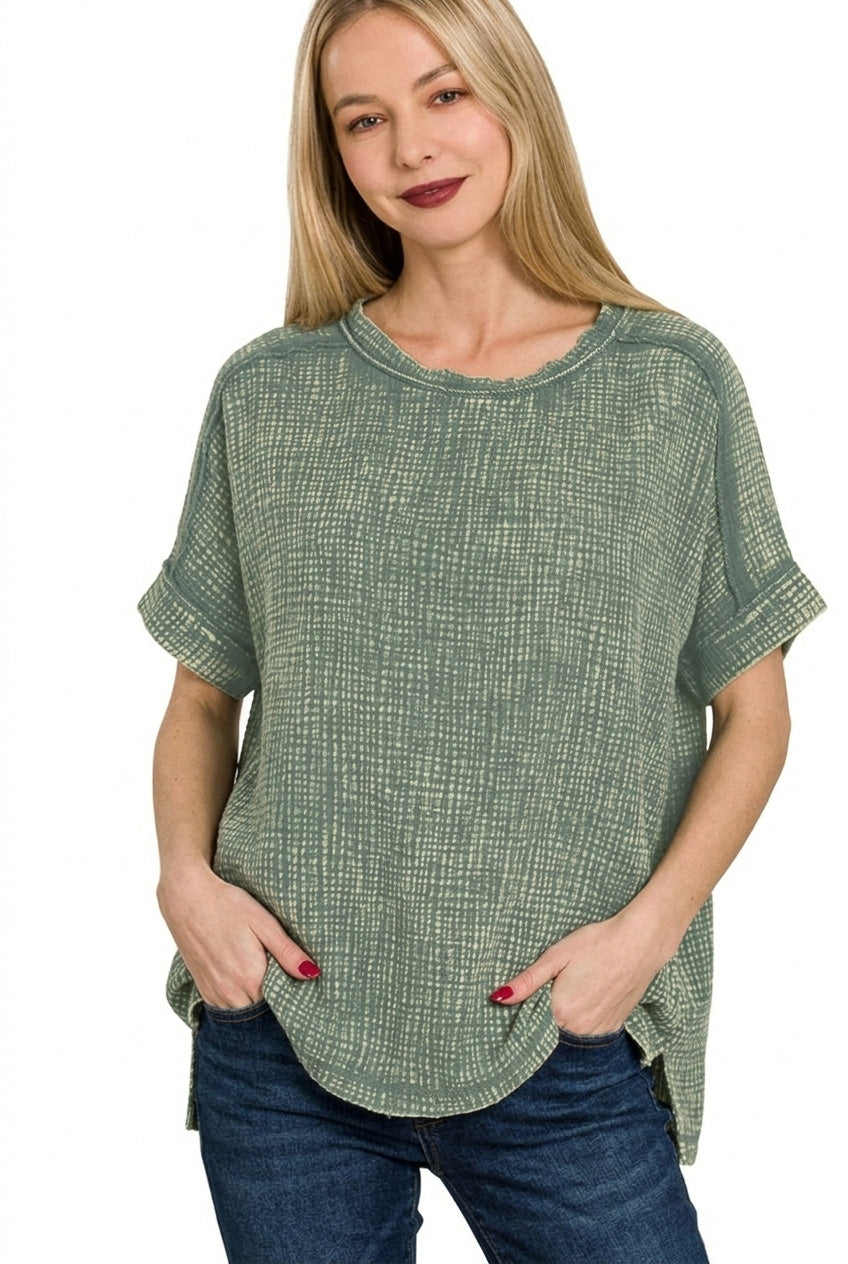 Zenana Acid Washed Double Gauze Round-neck Tee