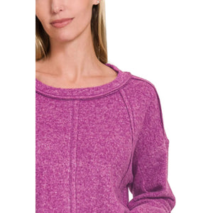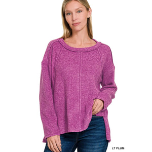 Zenana Brushed Hacci Exposed Seam Hi Low Sweater