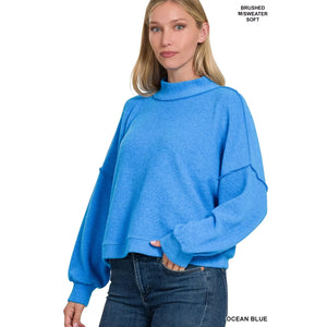 The brushed melange Hacci cropped sweater is a trendy and cozy addition to your wardrobe. With its soft and textured Hacci fabric, it provides a comfortable and luxurious feel. The cropped length offers a modern and stylish look that can be easily paired with high-waisted bottoms. Perfect for creating chic and casual outfits, this sweater is versatile for various occasions. Elevate your style with this on-trend cropped sweater.