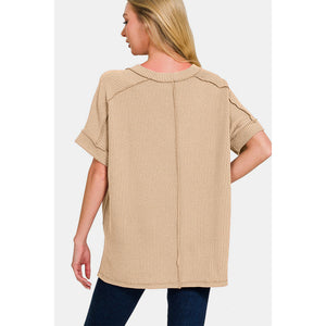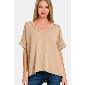 Zenana Corded Rib Short Sleeve High-Low T-Shirt