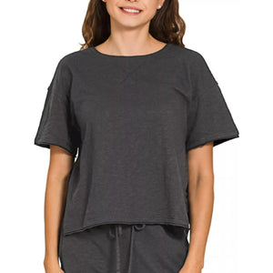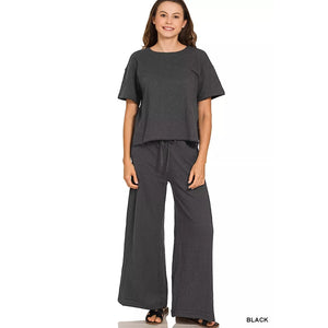 Zenana Cotton Slub Short Sleeve Tee and Pants Set