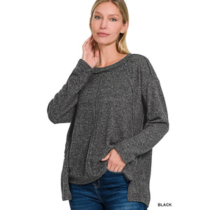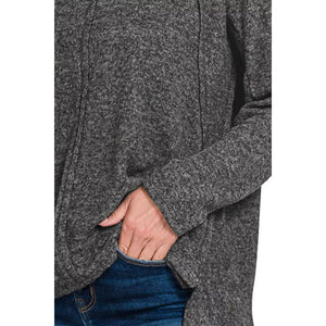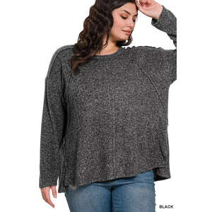 Zenana Full Size Brushed Hacci Exposed Seam Hi Low Sweater Plus Size