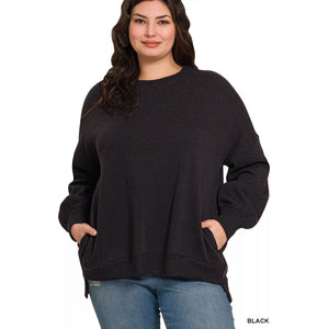 Zenana Full Size Fleece Hi-low Boyfriend Sweatshirts with Pockets Plus Size