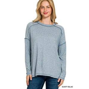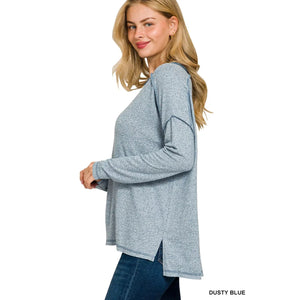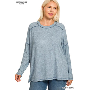 Zenana Full Size Melange Hacci Exposed Seam Hi-low Tee Plus Size