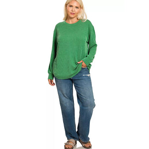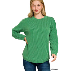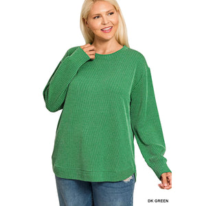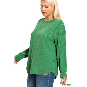 Zenana Full Size Raised Rib Round Neck Long Sleeve Top Plus Size