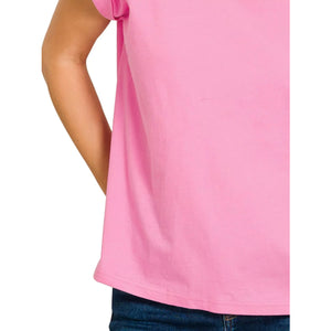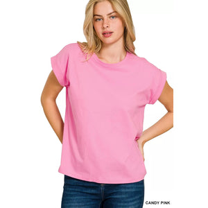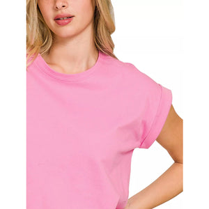 Zenana Round Neck Folded Short Sleeve T-Shirt