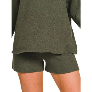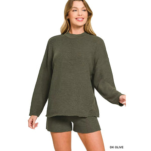 Zenana Round Neck Knit Top and Shorts Sweater Set