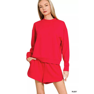 Zenana Scuba Long Sleeve Sweatshirt and Shorts Set