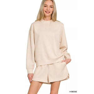 Zenana Scuba Long Sleeve Sweatshirt and Shorts Set