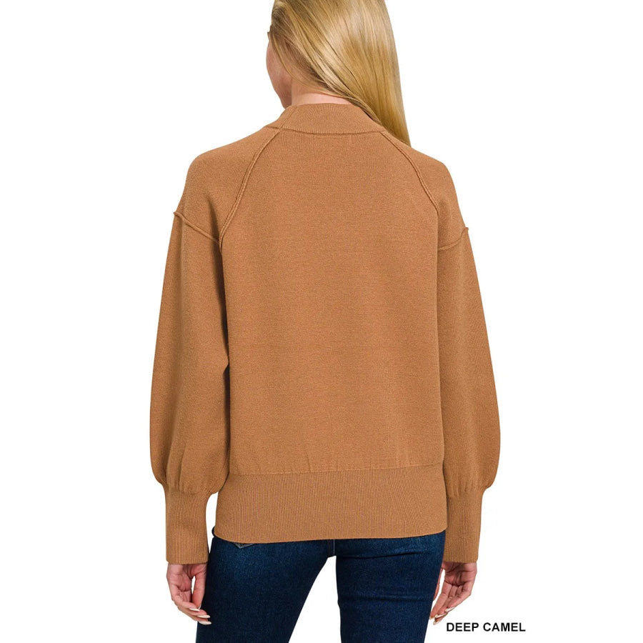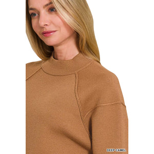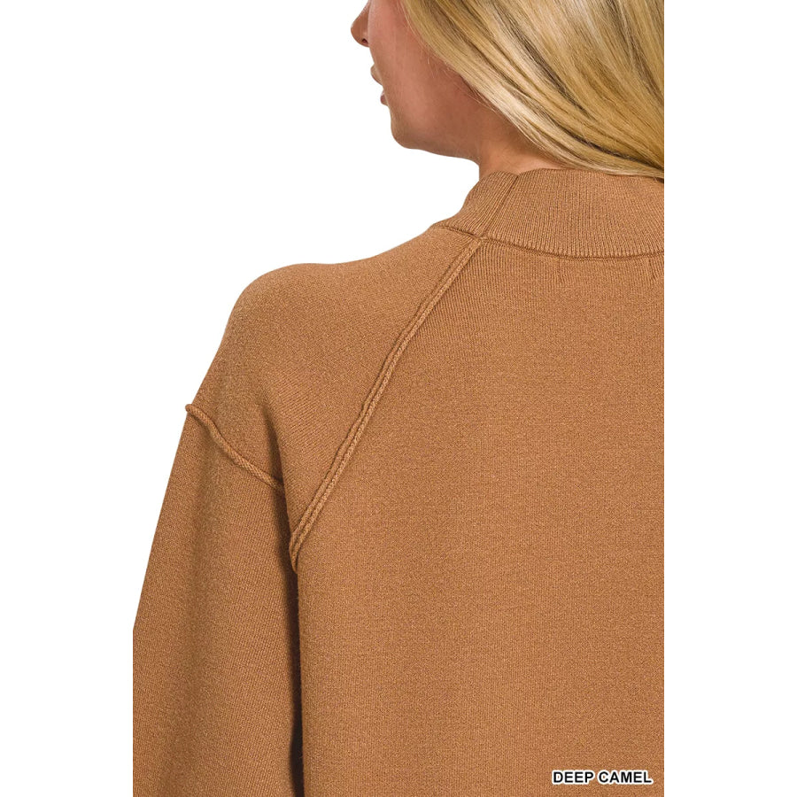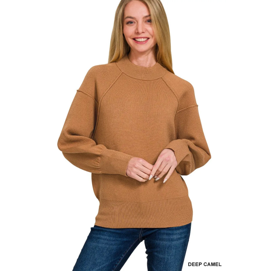 Zenana Viscose Mock Neck Exposed Seam Sweater