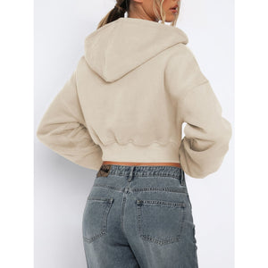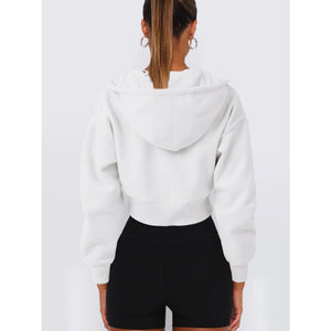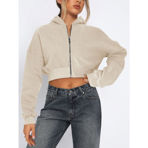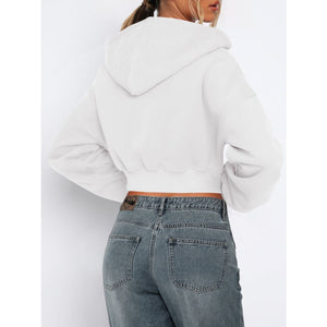 Zip Up Long Sleeve Hooded Cropped Jacket