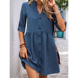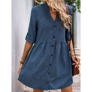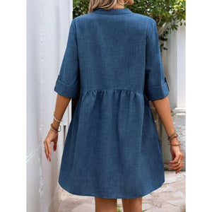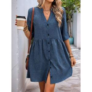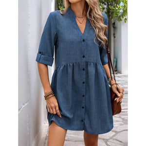 Perfee Button Down Notched Half Sleeve Mini Shirt Dress