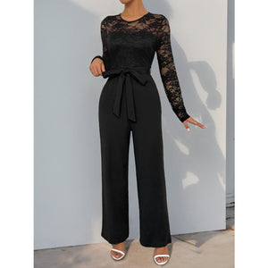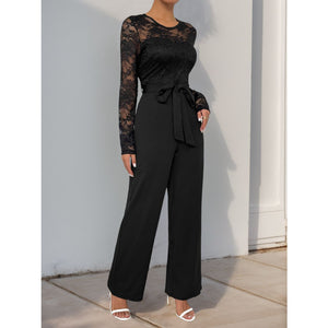 Perfee Lace Round Neck Long Sleeve Jumpsuit