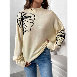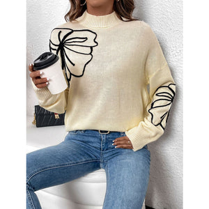 Perfee Mock Neck Dropped Shoulder Long Sleeve Sweater
