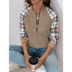 Perfee Plaid Half Zip Long Sleeve Texture Sweatshirt