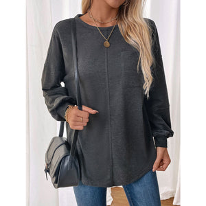 Perfee Pocketed Round Neck Long Sleeve Sweatshirt