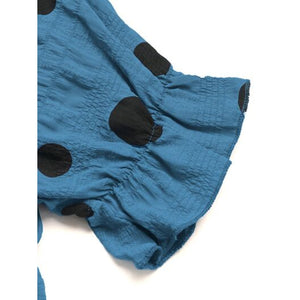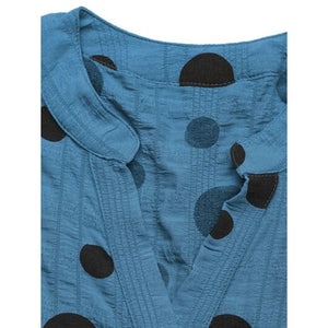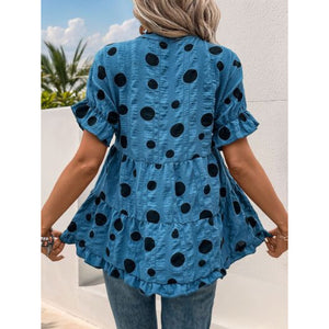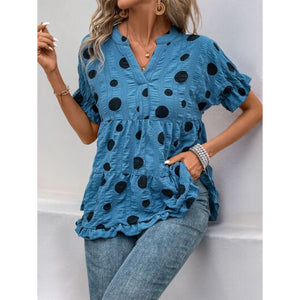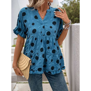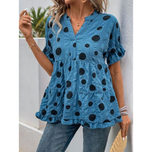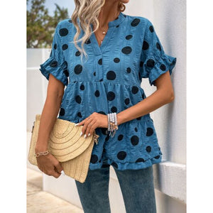 Perfee Polka Dot Notched Short Sleeve Shirt