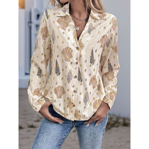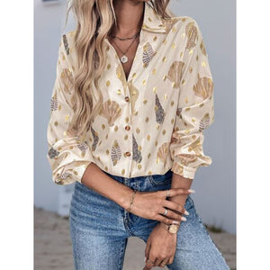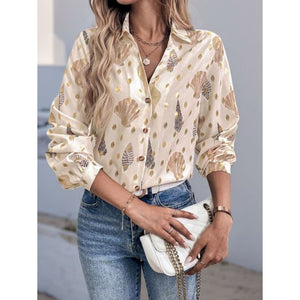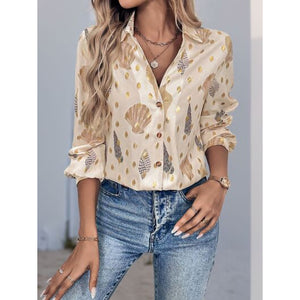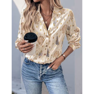 Perfee Printed Collared Neck Long Sleeve Shirt