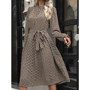 Perfee Printed Mock Neck Flounce Sleeve Dress