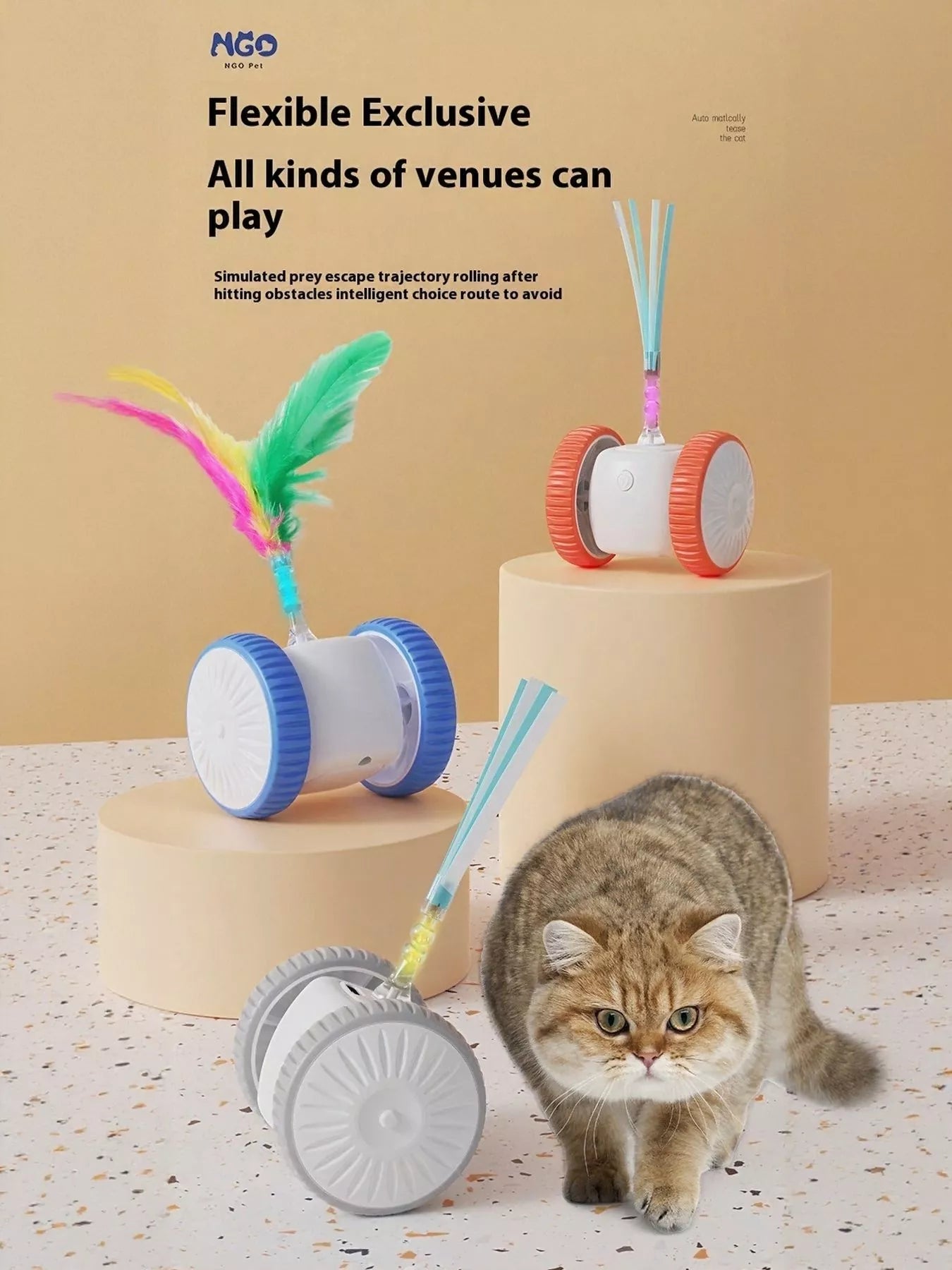 Interactive Self-Rotating Feather Pet Chase Toy