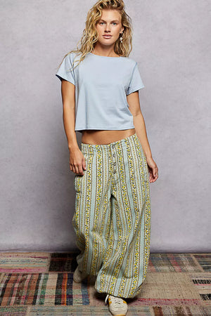 POL Contrast Stitching Round Neck Short Sleeve T-Shirt