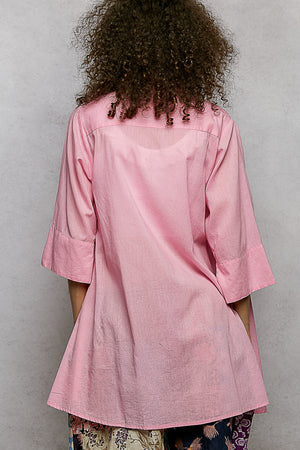 The half sleeve shirt top is crafted from cotton and features beautiful trailing embroidery for a touch of sophistication. The top undergoes a normal washing process, ensuring easy care and maintenance. The solid color lends a classic and versatile look, while the bold cuffs accent add a modern twist to the design. Perfect for adding a stylish flair to your ensemble, this top can be dressed up or down for various occasions. Pair it with tailored pants for a chic office look or with jeans for a casual weekend outfit.