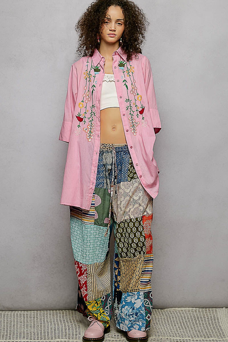 POL Floral Embroidered Half Sleeve Cotton Shirt
