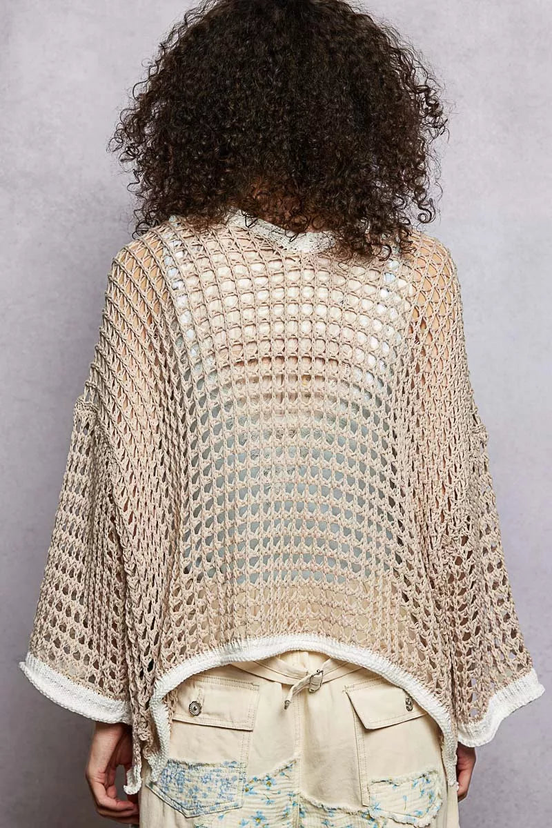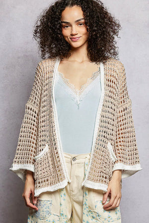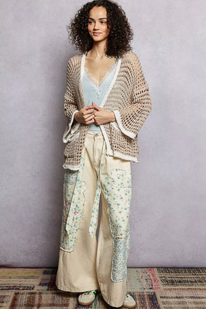 POL Open Front Openwork Cardigan with Contrast Trim