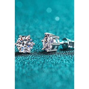 925 Sterling Silver 6-Prong 2 Carat Moissanite Stud Earrings