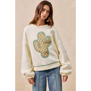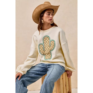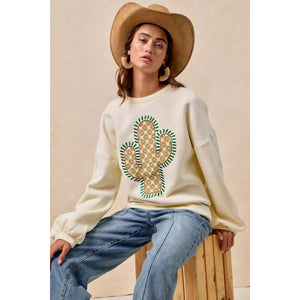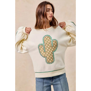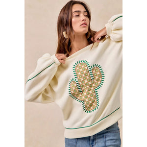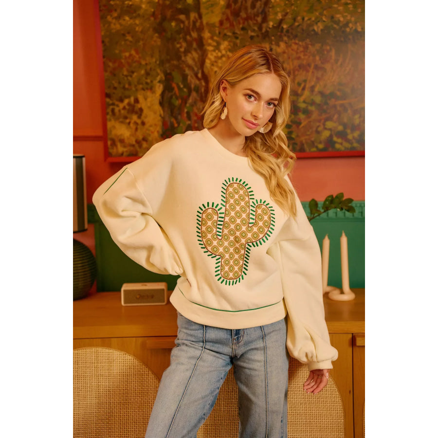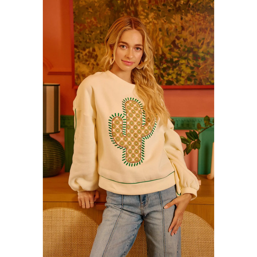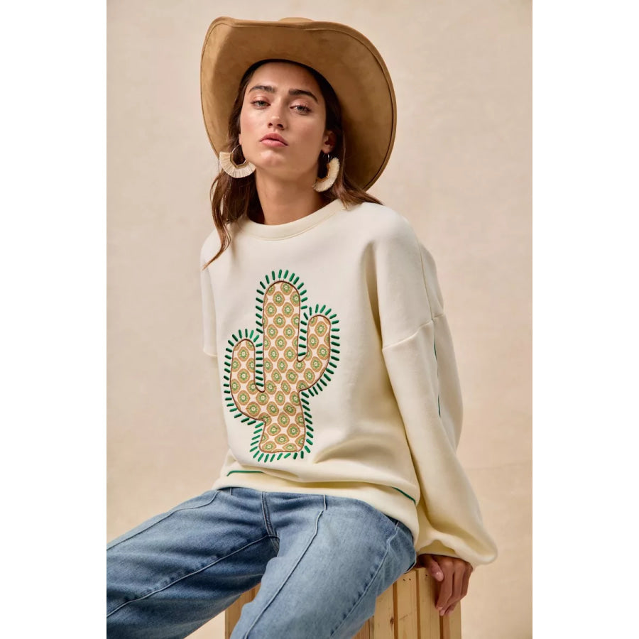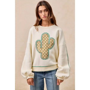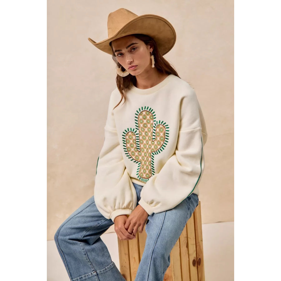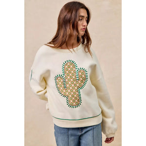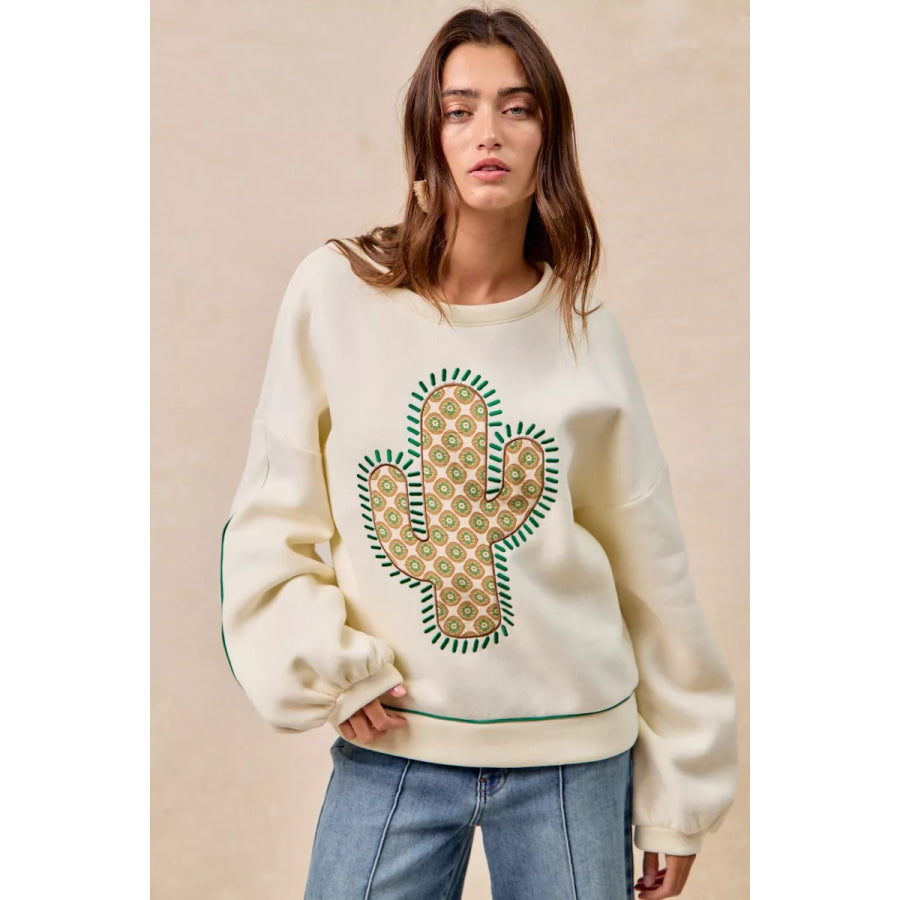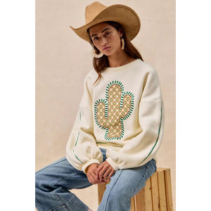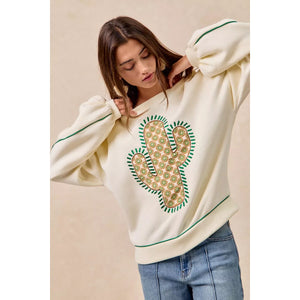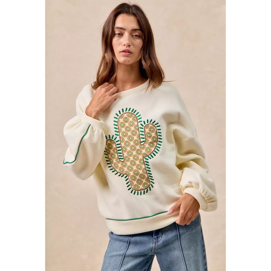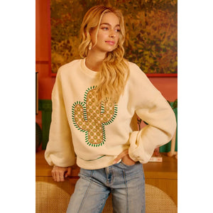 BiBi Cactus Embroidered Fleece Sweatshirt