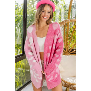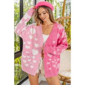 BiBi Heart Color Block V-Beck Knit Cardigan with Pockets