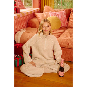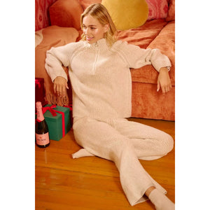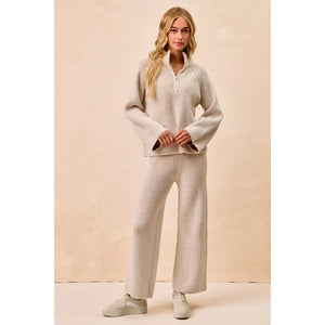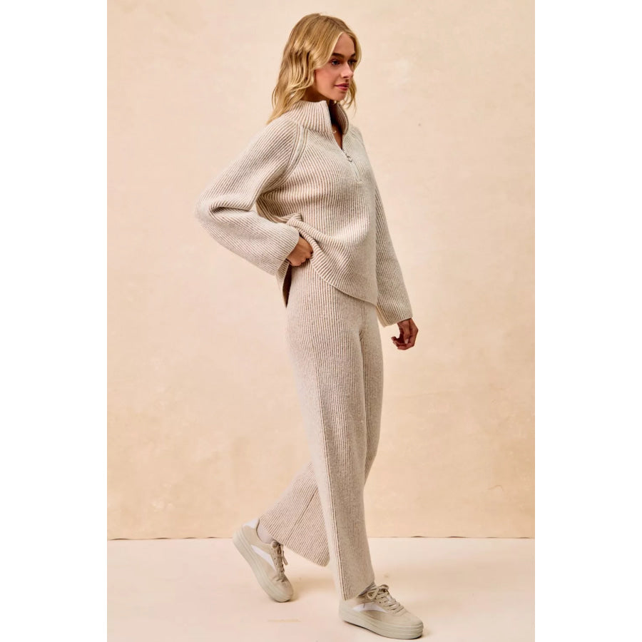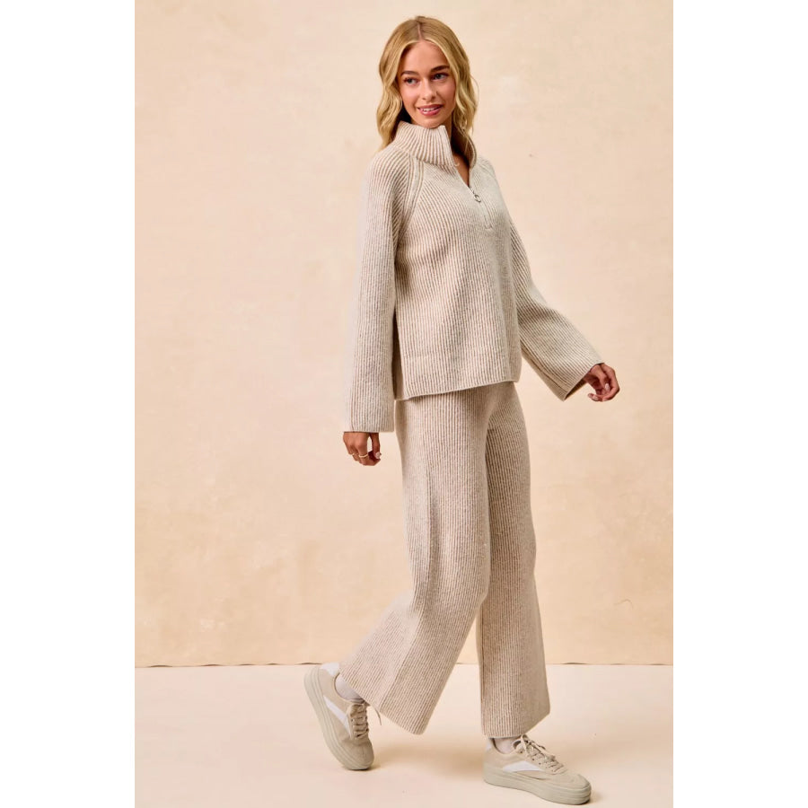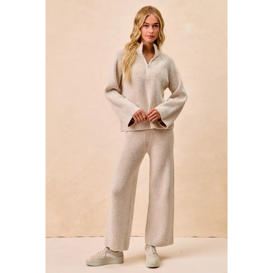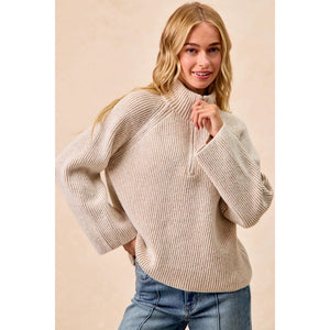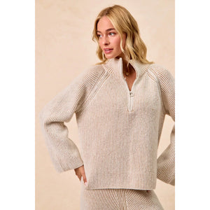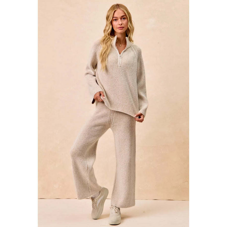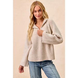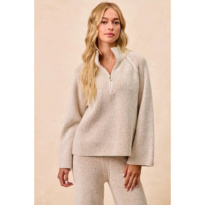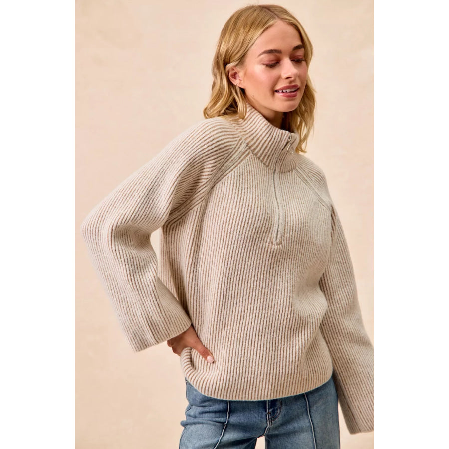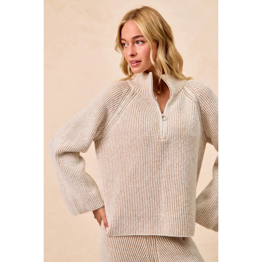 BiBi Two Tone Rib Texured Knit Collared Top with Zip Up