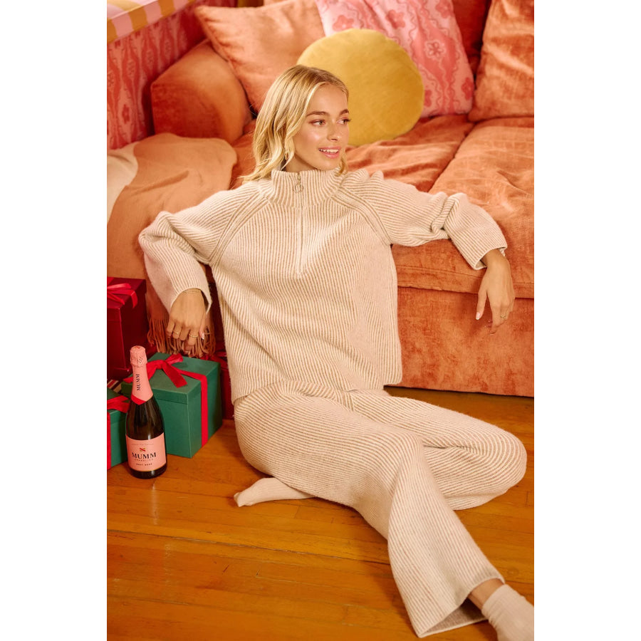 This stylish collared top features a unique two-tone ribbed texture knit design. The zip-up detailing adds a modern touch to the classic silhouette. Pair it with your favorite bottoms for a chic and versatile look. The soft fabric ensures comfort for all-day wear. Elevate your wardrobe with this trendy and sleek top.