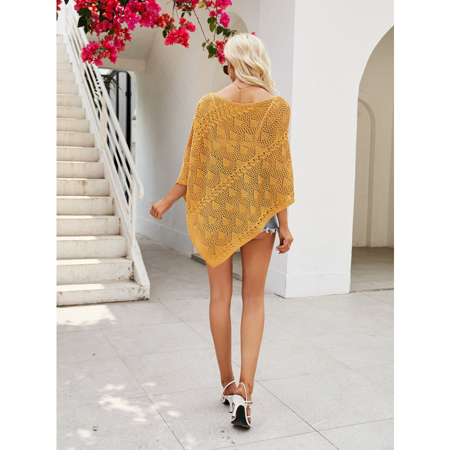Openwork Boat Neck Shawl Cover Up