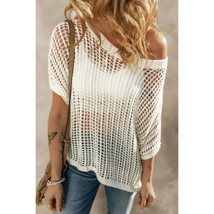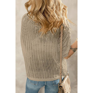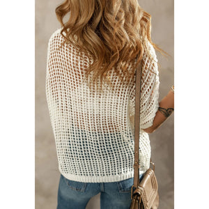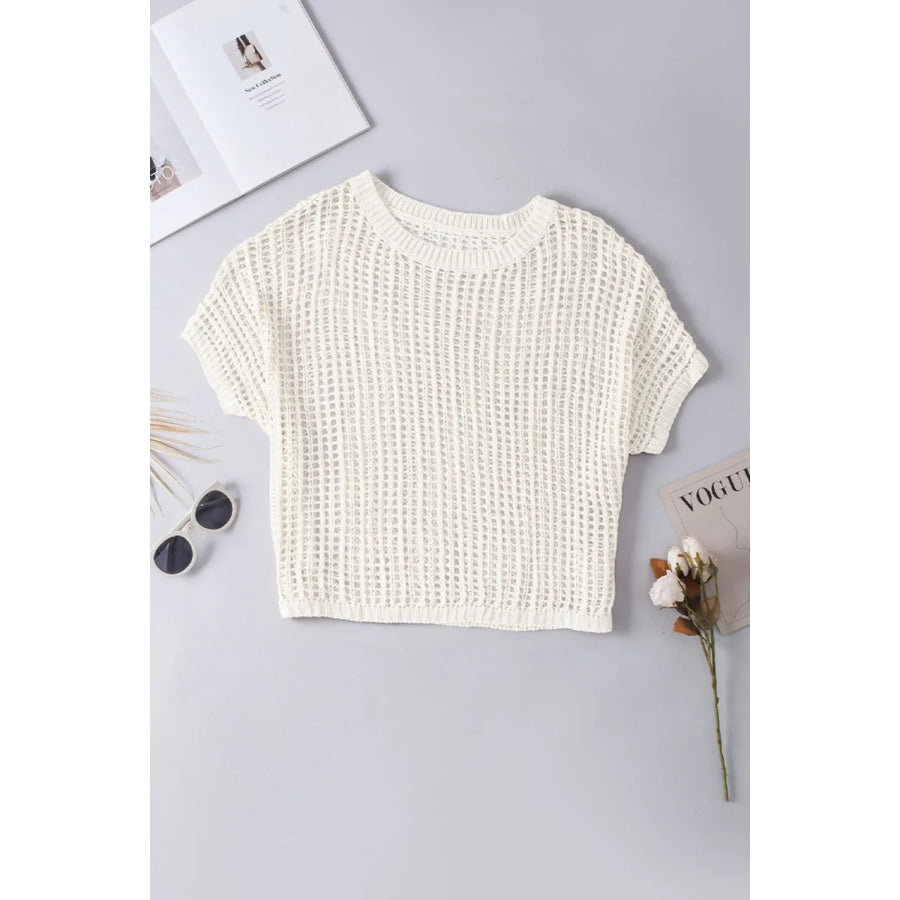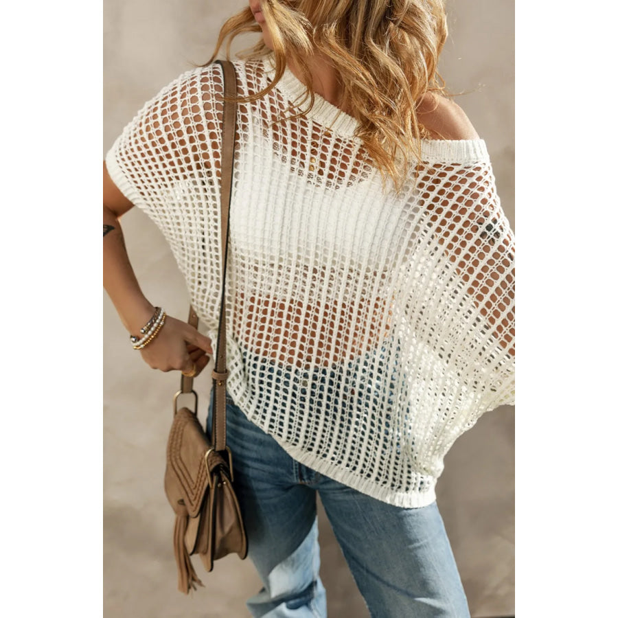 Openwork Round Neck Half Sleeve Knit Cover Up