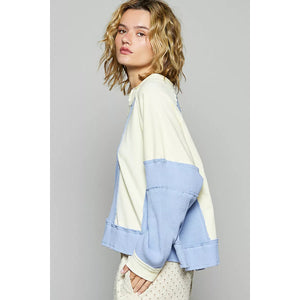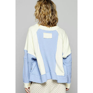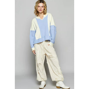 POL Color Block Waffle Knit Raw Hem Sweatshirt
