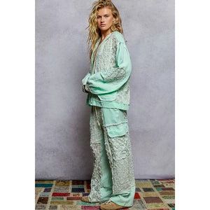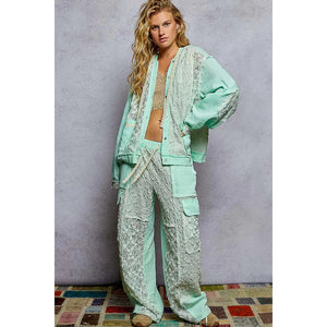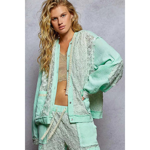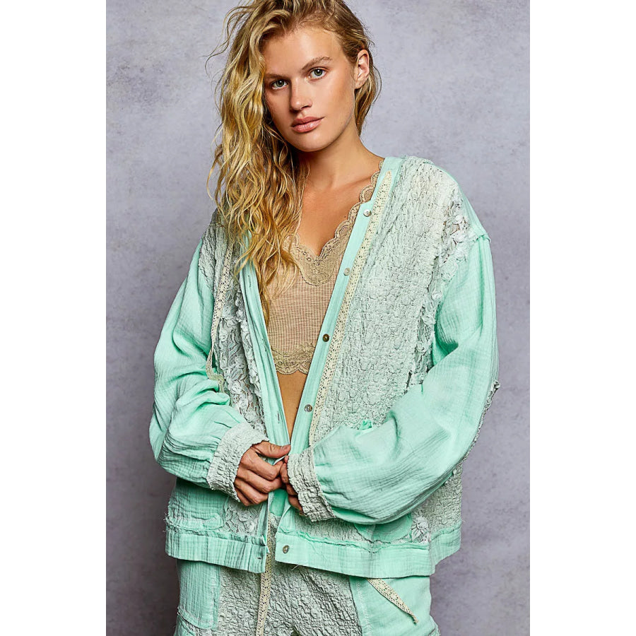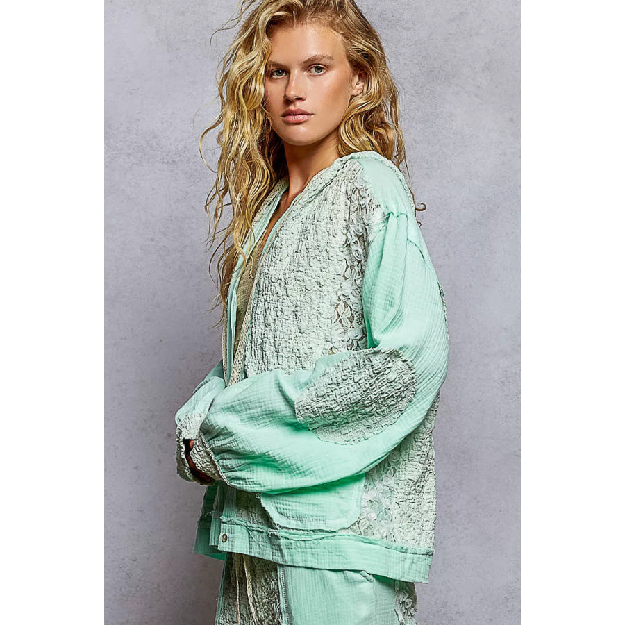 POL Exposed Seam Button Down Hooded Jacket with Lace Detail