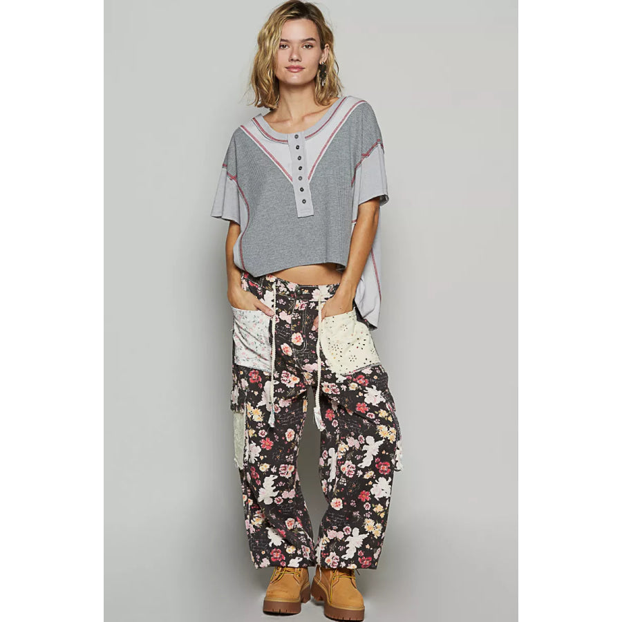 • Features:Basic style,Waffle-Knit,Buttoned,Exposed seam,Contrast Stitching