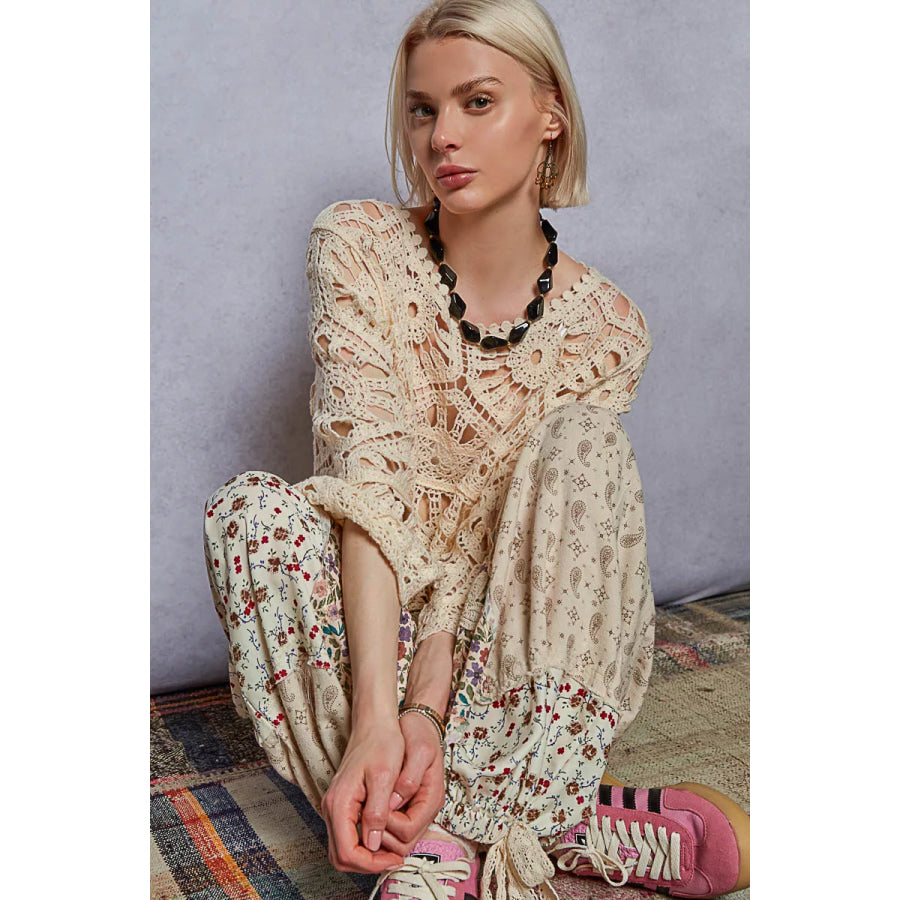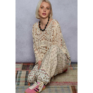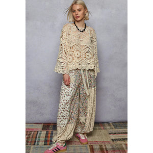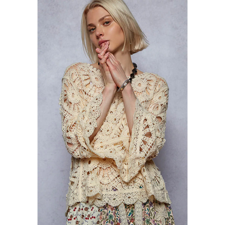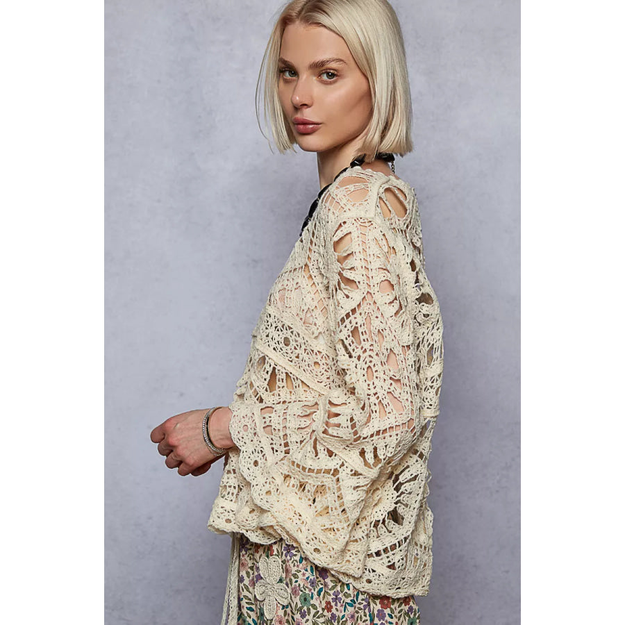 POL Round Neck Weave Knit Pattern Cropped Cover Up