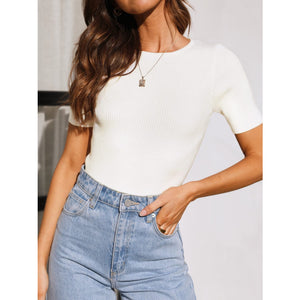 Round Neck Short Sleeve Knit Top