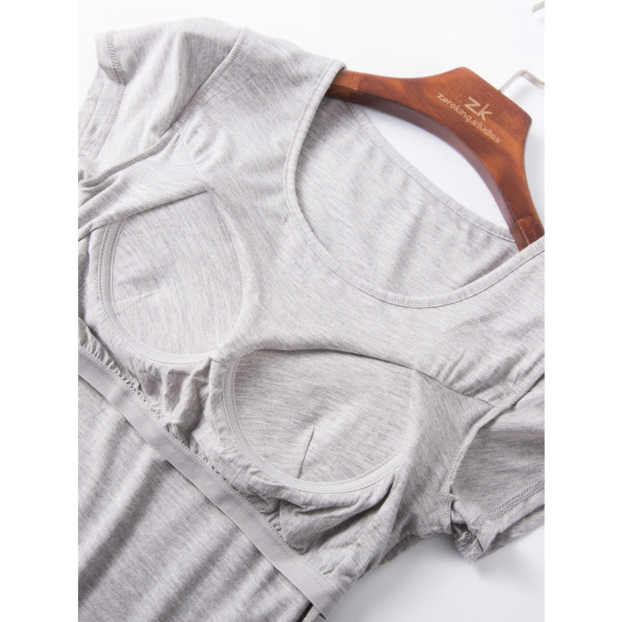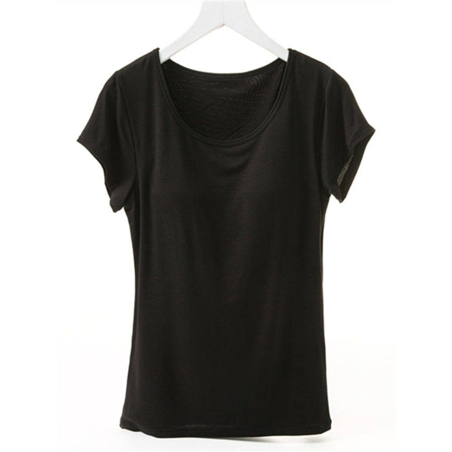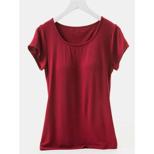 Round Neck Short Sleeve T-Shirt with Bra