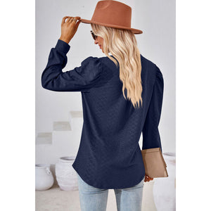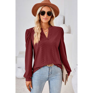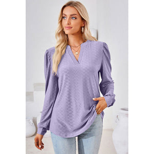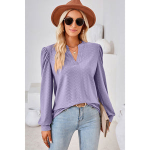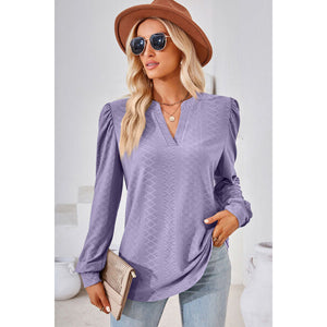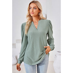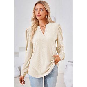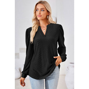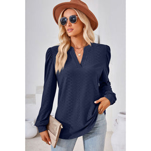 Ruched Notched Long Sleeve T-Shirt