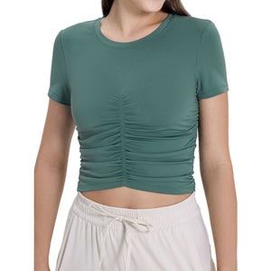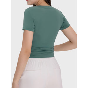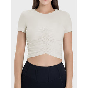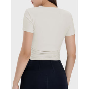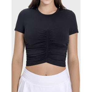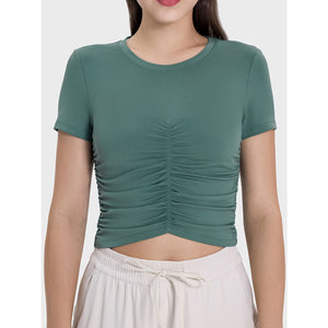 Ruched Round Neck Short Sleeve Active T-Shirt