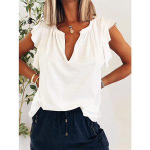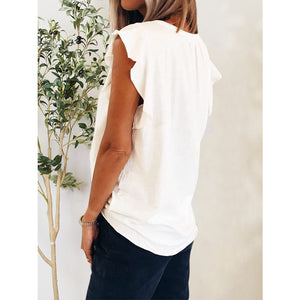 Ruffled Notched Cap Sleeve T-Shirt